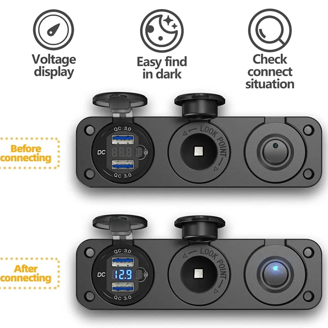 Dc 12V 24V Panel montaj 3 Usb bağlantı noktaları 2 usb-bir 3.1A + tip-c Pd3.0 araç şarj soketi
